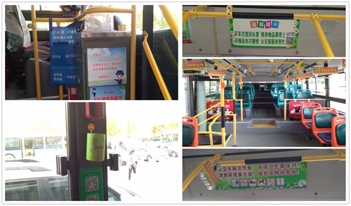 踏上60路的公交車廂,迎面給人的感覺是清爽而溫馨。從一進(jìn)門處的“排隊(duì)乘車有秩序、上班辛苦別大意”的提示語,到設(shè)立在司機(jī)身旁的“便民袋”;從“公交車廂勿飲食、清新環(huán)境靠大家”,到“下車注意回頭望、隨身物品要帶上”的溫馨提示,每一處都隨乘客的步伐而用心設(shè)置。特別是在每個(gè)車廂窗框旁安裝的——用飲料瓶制作的“我也愛吃口香糖”的簡易垃圾籃,不僅美化了車廂環(huán)境,更起到了很好的宣傳提示作用。