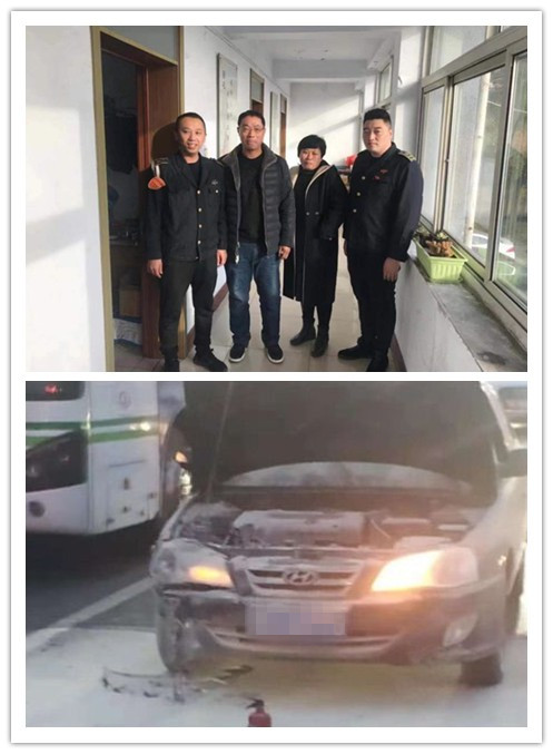 11月27日,16時50分許,三公司四隊駕駛員吳春豐駕駛56路2568公交車由唐山站駛往銀河路車場方向,行駛至長寧道華巖路交叉口等信號時,發(fā)現(xiàn)同向的一輛黑色私家車變綠燈后沒有正常起步,并且引擎處還冒起了陣陣黑煙,火苗也隨之竄出車外,現(xiàn)場情況十分危急。