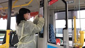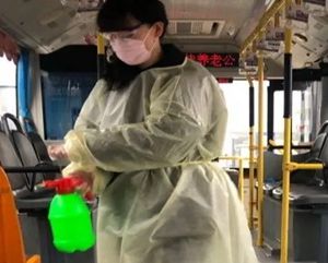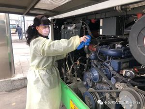 2月24日2路第一天恢復(fù)運(yùn)營(yíng),每部參運(yùn)車(chē)輛多出一名隨車(chē)體溫檢測(cè)員,王穎跟丈夫分在同車(chē)組。早晨6:00,夫妻倆已經(jīng)到2路始發(fā)站唐山站,開(kāi)始出車(chē)前的準(zhǔn)備工作:檢查完車(chē)輛安全,再打掃干凈衛(wèi)生,噴灑消毒液對(duì)車(chē)廂每處角落進(jìn)行徹底消殺。王穎跟丈夫一對(duì)一天輪流開(kāi)車(chē)、進(jìn)行登記,從唐山站行駛到啟新立交橋后,就要停留兩分鐘嚴(yán)格落實(shí)一車(chē)次一消毒。遇見(jiàn)急躁的乘客,王穎就耐心勸導(dǎo);有不明白的老年乘客想乘車(chē),她也總不厭其煩地解釋溝通。