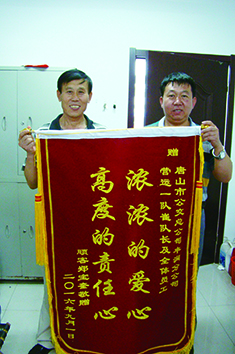 9月1日上午,鄭先生特意制作了兩面錦旗,來到豐潤(rùn)區(qū)車場(chǎng)分別對(duì)物業(yè)站職工拾金不昧、豐潤(rùn)公司職工樂于助人、熱情服務(wù)表示感謝。鄭先生說:“我要為咱們公交職工的愛心與熱心點(diǎn)贊,你們太熱心,太熱情了。昨天我來車場(chǎng)時(shí)先后接觸了司機(jī)、路隊(duì)長(zhǎng)、保安、物業(yè)站長(zhǎng)和保潔員幾個(gè)崗位的工作人員,他們每個(gè)人都非常熱情、充滿愛心,更是樂于助人,言行中處處充滿著正能量,真的令我很感動(dòng)!”