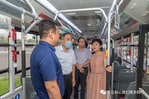 隨后,市政協(xié)視察組一行登上了新投入使用的30路純電動(dòng)公交車進(jìn)行體驗(yàn),對新公交車的各項(xiàng)新功能進(jìn)行了解,并就新投入使用的純電動(dòng)公交車的安全性能、乘坐舒適度、電池續(xù)航里程以及疫情防控常態(tài)化下公交運(yùn)營、公交司乘人員的文明服務(wù)、老年人乘坐公交車等情況同公交管理人員進(jìn)行了深度交流。