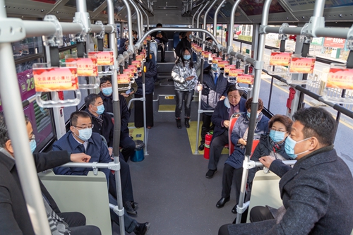 隨后,市人大代表們分別登上三輛新能源公交車,前往下一視察地點。郭彥洪一行詳細了解了我市新能源公交車結(jié)構(gòu)以及公交車運營里程、電池續(xù)航里程、安全性等問題;對新能源公交車乘車環(huán)境、技術(shù)亮點及新功能進行了體驗,指出降低門口踏板、安裝空氣凈化器、USB充電插座等人性化設(shè)施,為百姓乘坐公交車提供了方便;360度電子后視鏡、液體安檢儀、防碰撞預(yù)警裝置等新功能,為百姓提供了更加安全的乘車環(huán)境;純電動新能源公交車相比清潔能源車輛,噪音小、零污染、零排放,節(jié)能效果顯著,為我市節(jié)能減排和大氣污染防治發(fā)揮了積極作用。