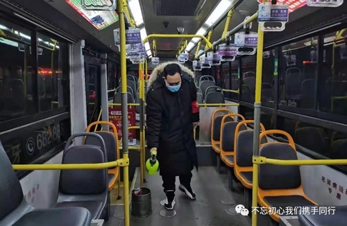 凌晨5:20,等待發(fā)車的我迎來幾張陌生面孔,莫不是新入職的駕駛員?原來他們暫時不能承擔(dān)駕駛員的工作,但是他們加入了防控的隊(duì)伍。為準(zhǔn)備上崗的駕駛員測量體溫,給運(yùn)營車輛在出車前、收車后集中消殺通風(fēng),針對乘客易接觸的投幣箱、扶手、座椅等部位重點(diǎn)消毒,嚴(yán)格執(zhí)行一趟一通風(fēng)、一趟一消殺。老搭檔告訴我,只有接受消毒噴灑的洗禮,才能躋身抗擊疫情的行列。“來吧,我身經(jīng)百戰(zhàn),怎會退縮!”一切準(zhǔn)備完畢,出發(fā)。